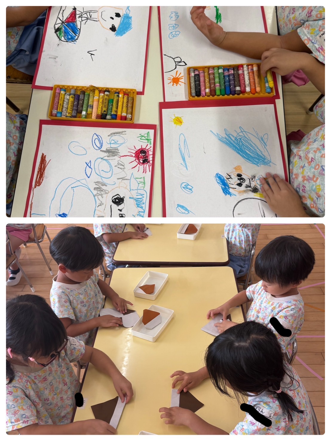 筆を使って、ぬり塗り🎨みんな集中していましたよ。