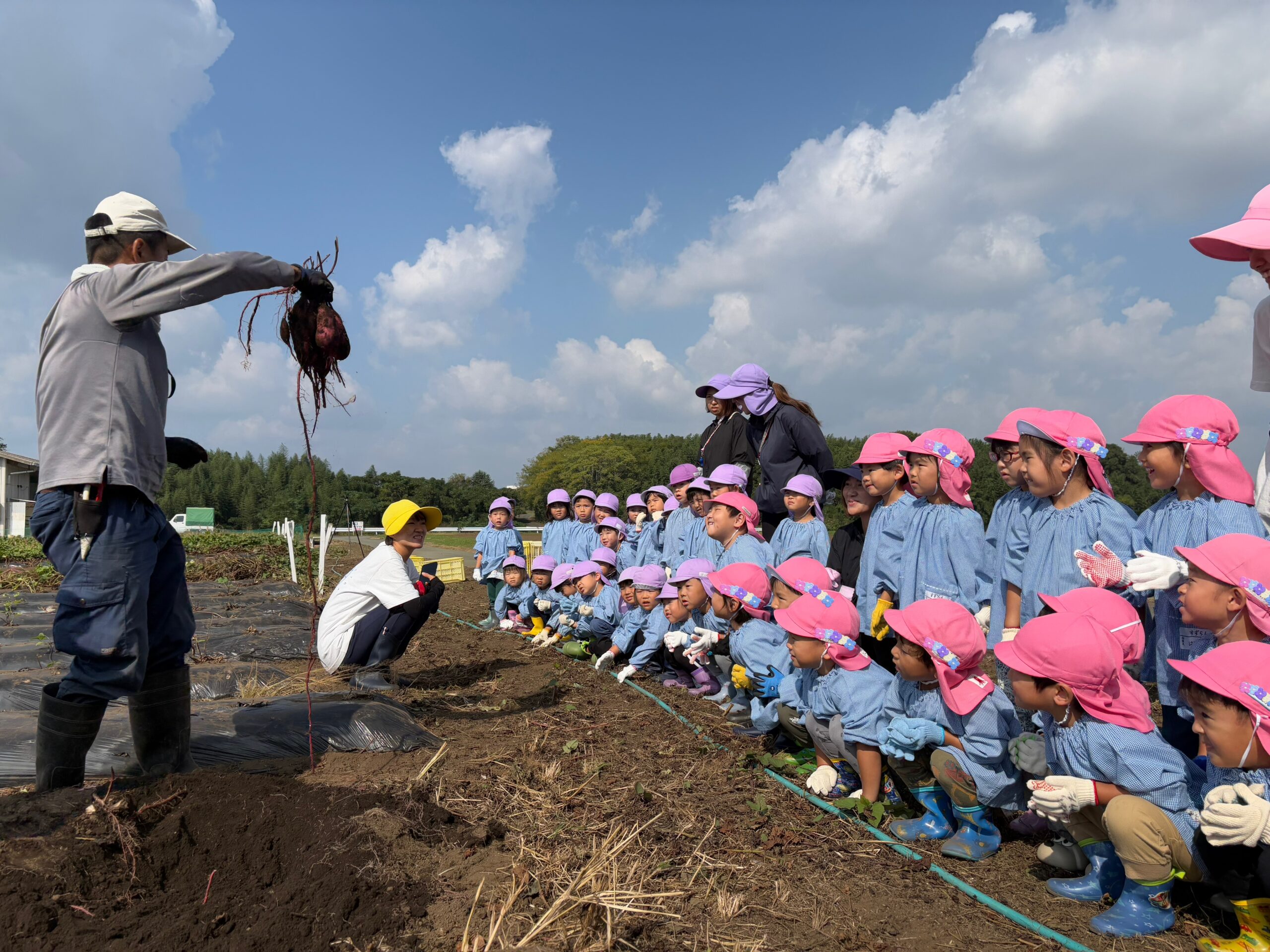 カントリーパークの方が、掘り方の見本を見せてくださると、大きなお芋が掘れ拍手👏をする子どもたちでした。
