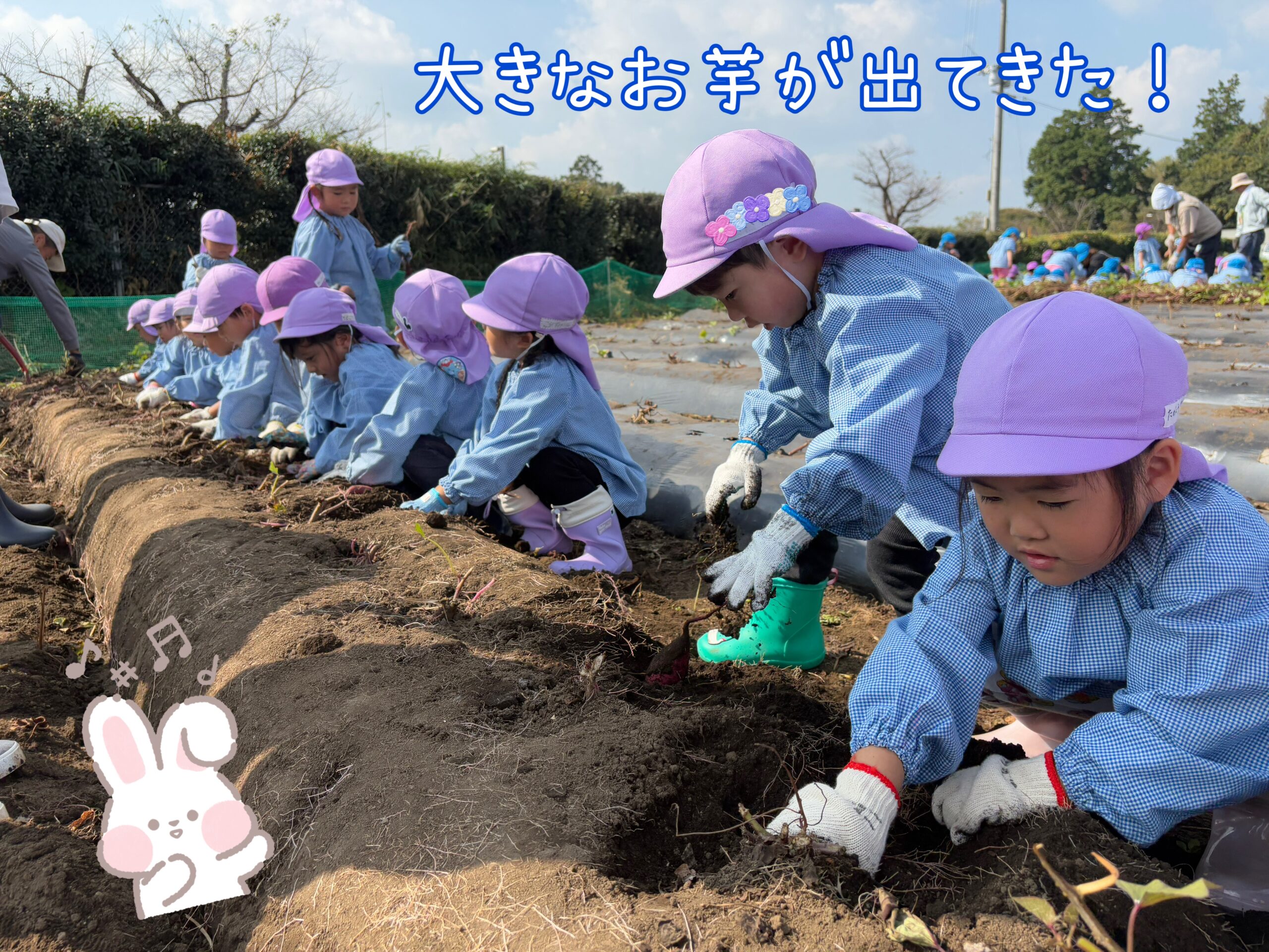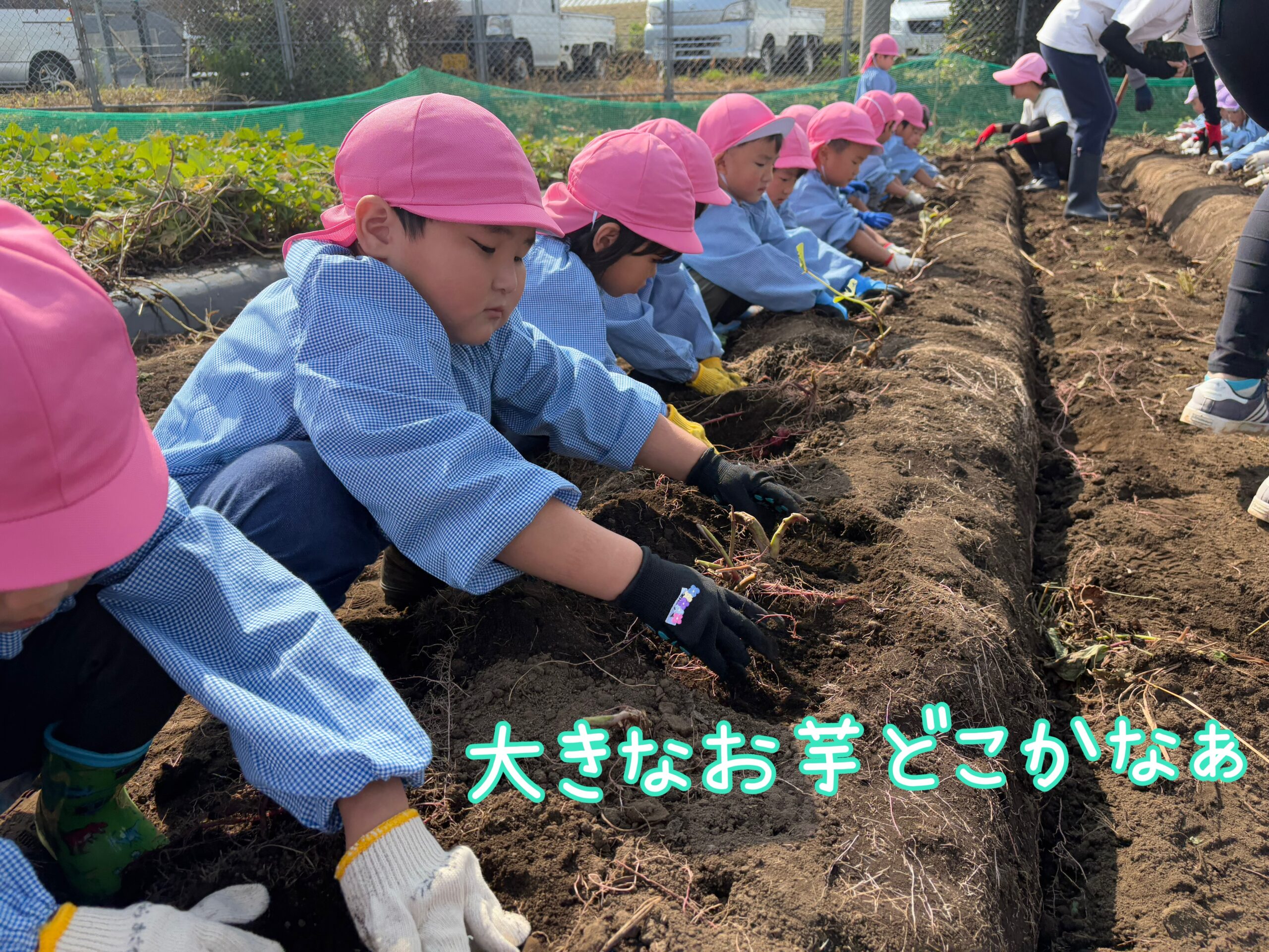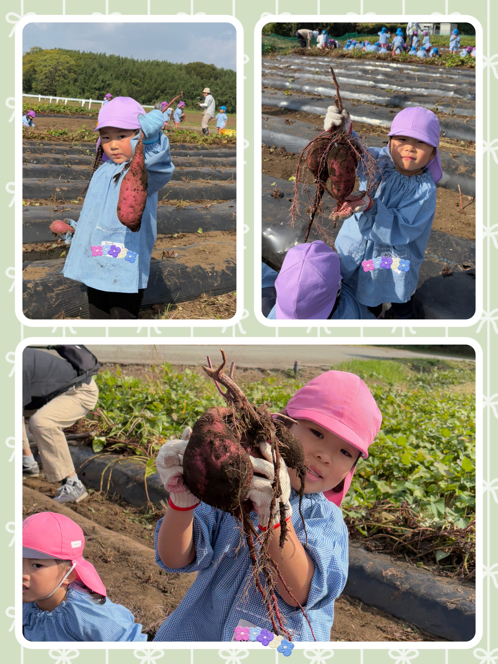 お友だちと一緒に掘ったり一生懸命集中して掘ったりと、とても楽しんでいる子どもたち・・・大きいお芋やツルにたくさん繋がっているお芋などたくさんのお芋を掘ることができました🍠✨