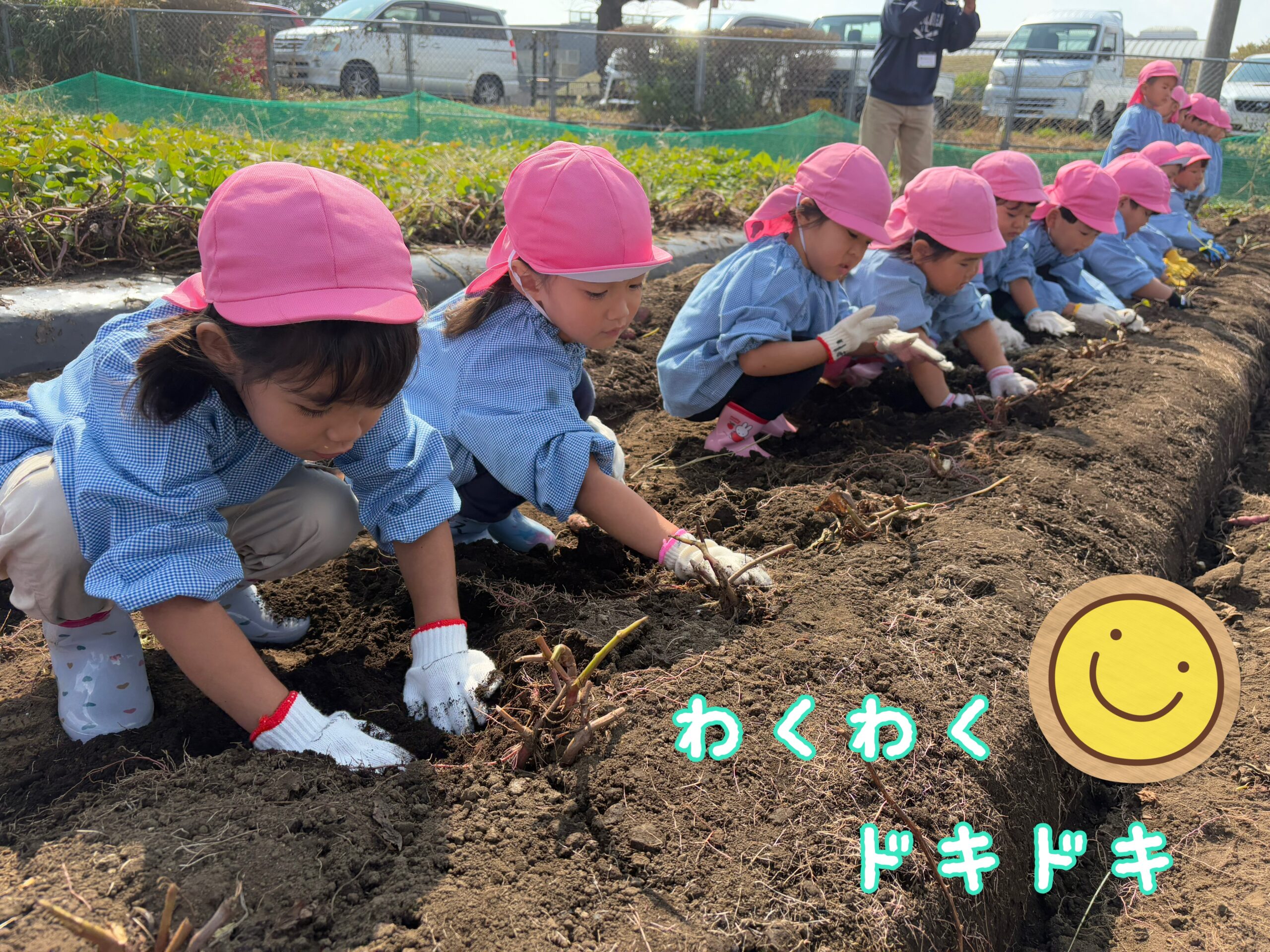 「うんとこしょ~♪どっこいしょ~♪」の歌が大好きな子どもたち😊お天気に恵まれた今日は、楽しみにしていたお芋掘りに行ってきました。