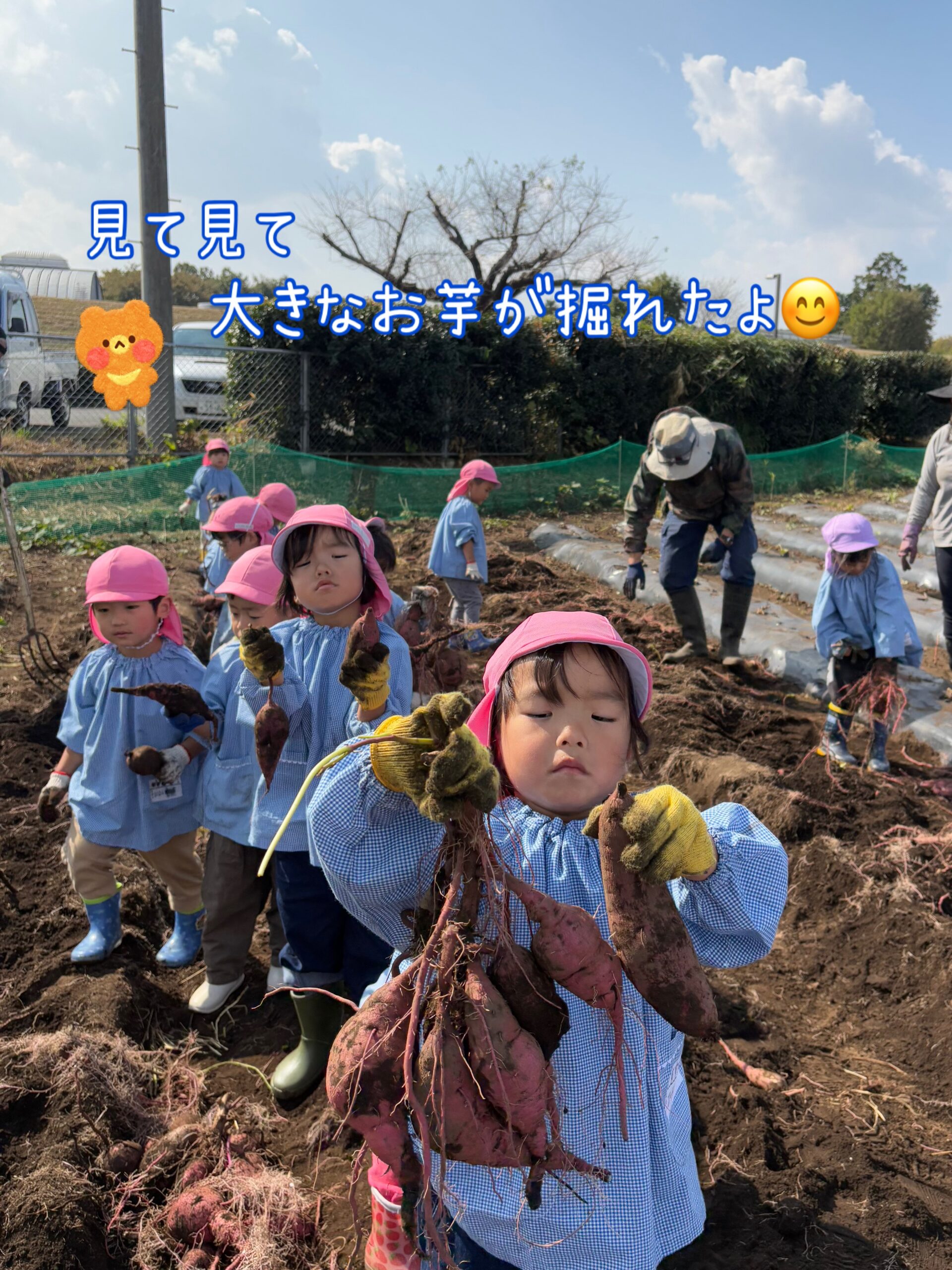 帰りのバスでは、堀ったお芋をお味噌汁やスイートポテトにしたいという話で盛り上がったり、焼き芋グーチーパーをしたりと最後までたくさん楽しむことが出来た子どもたちでした😊