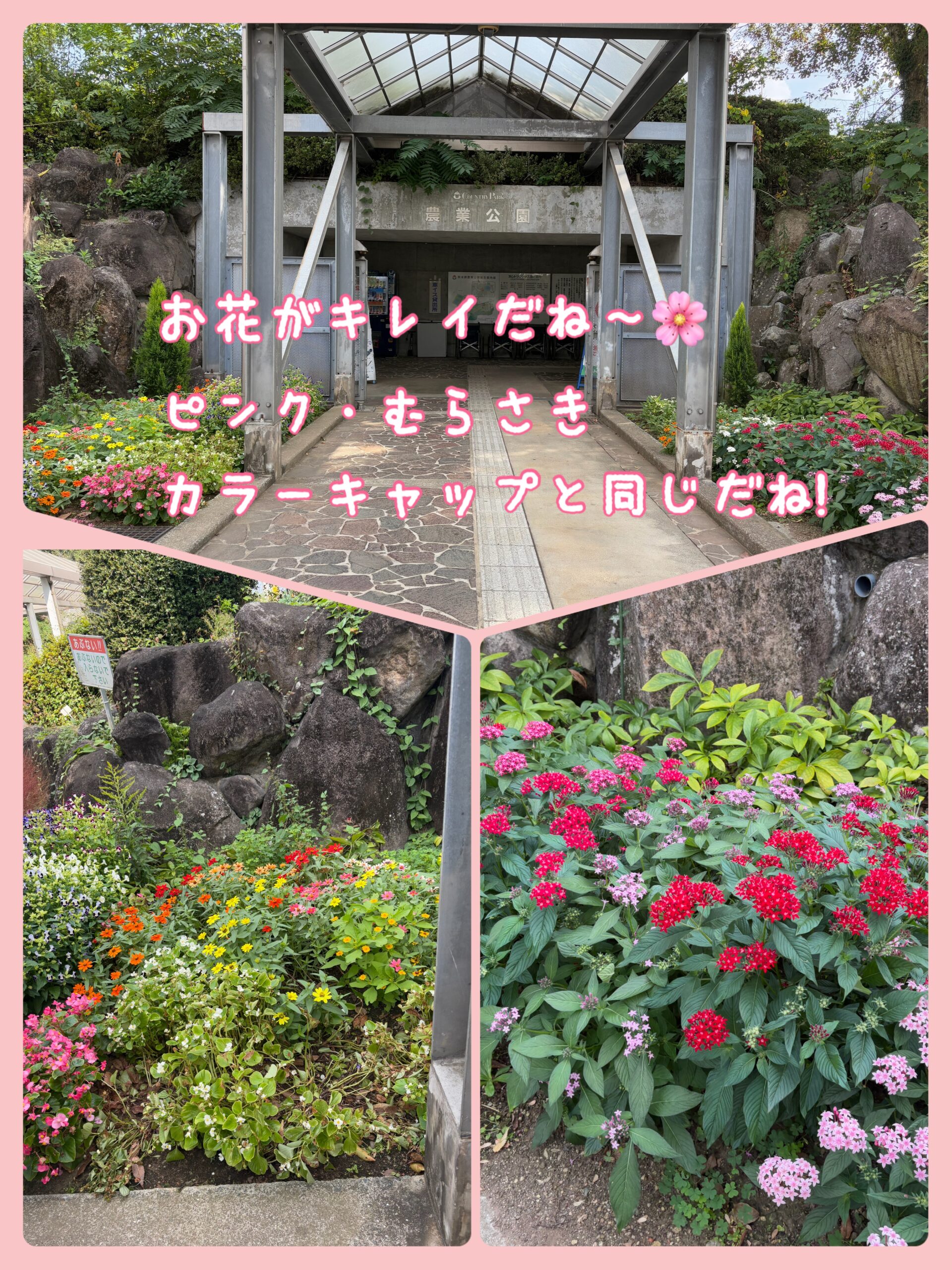「かわいい💕お花」「キレイなお花」と話す会話の中に、カラーキャップと同じ色を発見して大喜びしていた子どもたちでした。