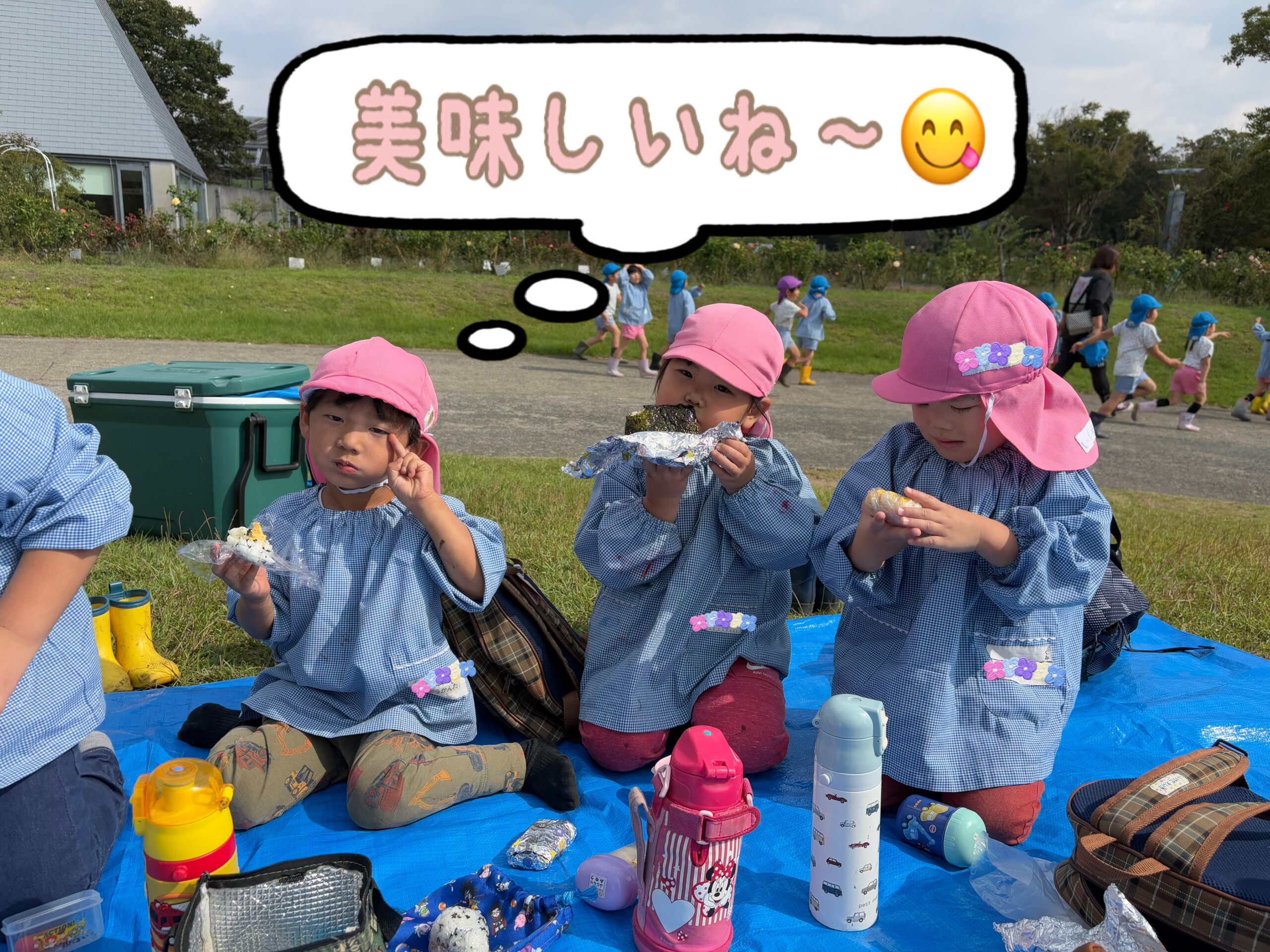広場で、楽しみにしていたランチタイム🍙