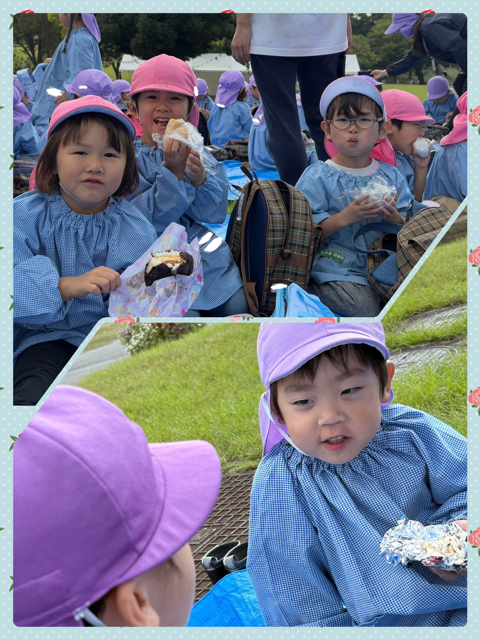 「チーズが入ってるおにぎりだよ!」「わかめおにぎり同じだね」と先生やお友だちと楽しく話しながら食べることが出来ました✨
