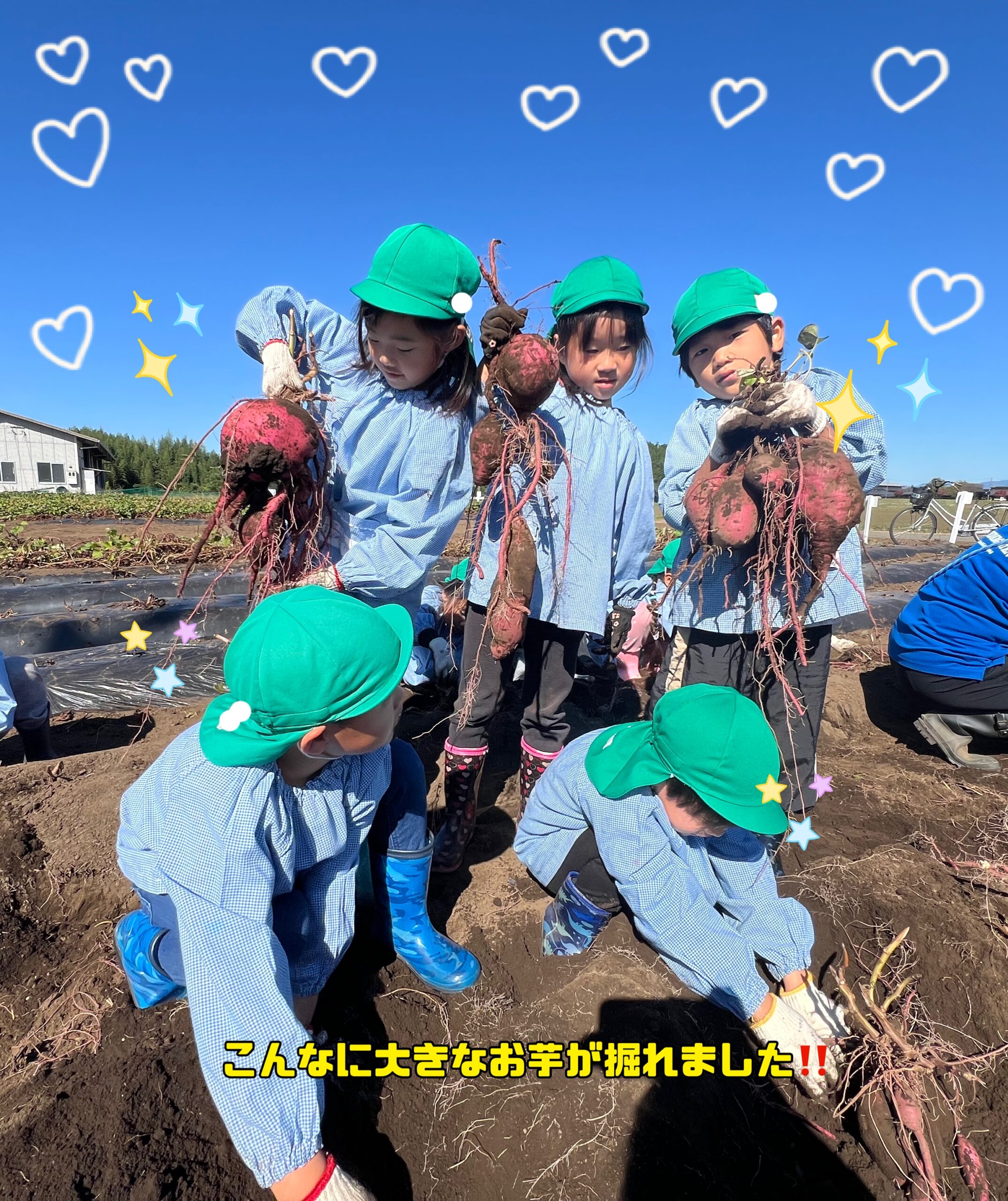 帰りのバスでは、「お芋がこんなに大きいとは思わなかった~」と話しながら幼稚園まで戻りました。