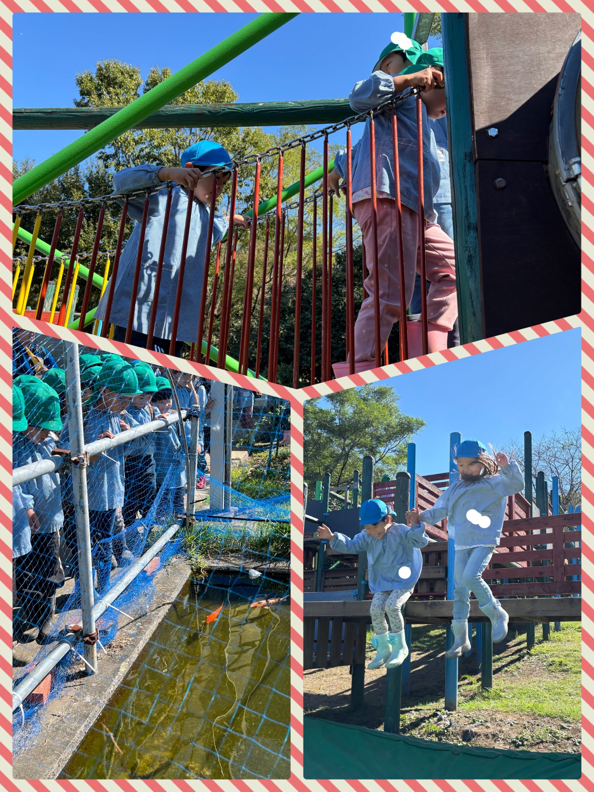 お腹いっぱい食べた後は、大きな遊具で遊んだり、バラを見たり、鯉を見たりと色んなことをして楽しむことが出来ました!