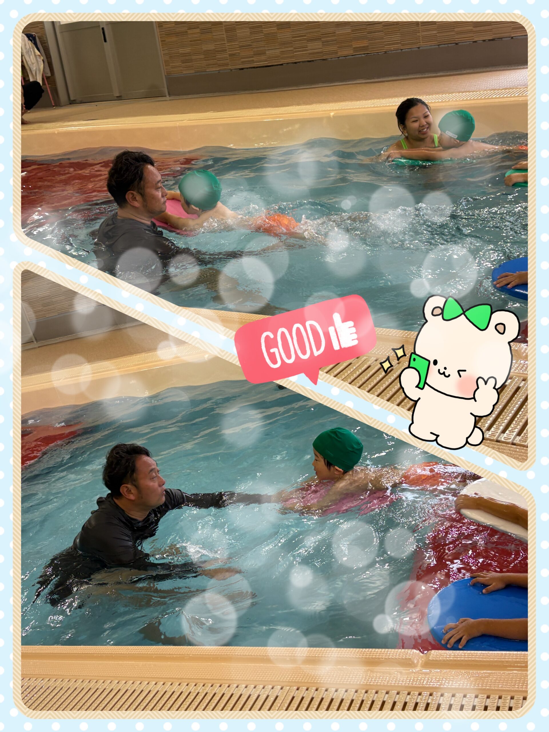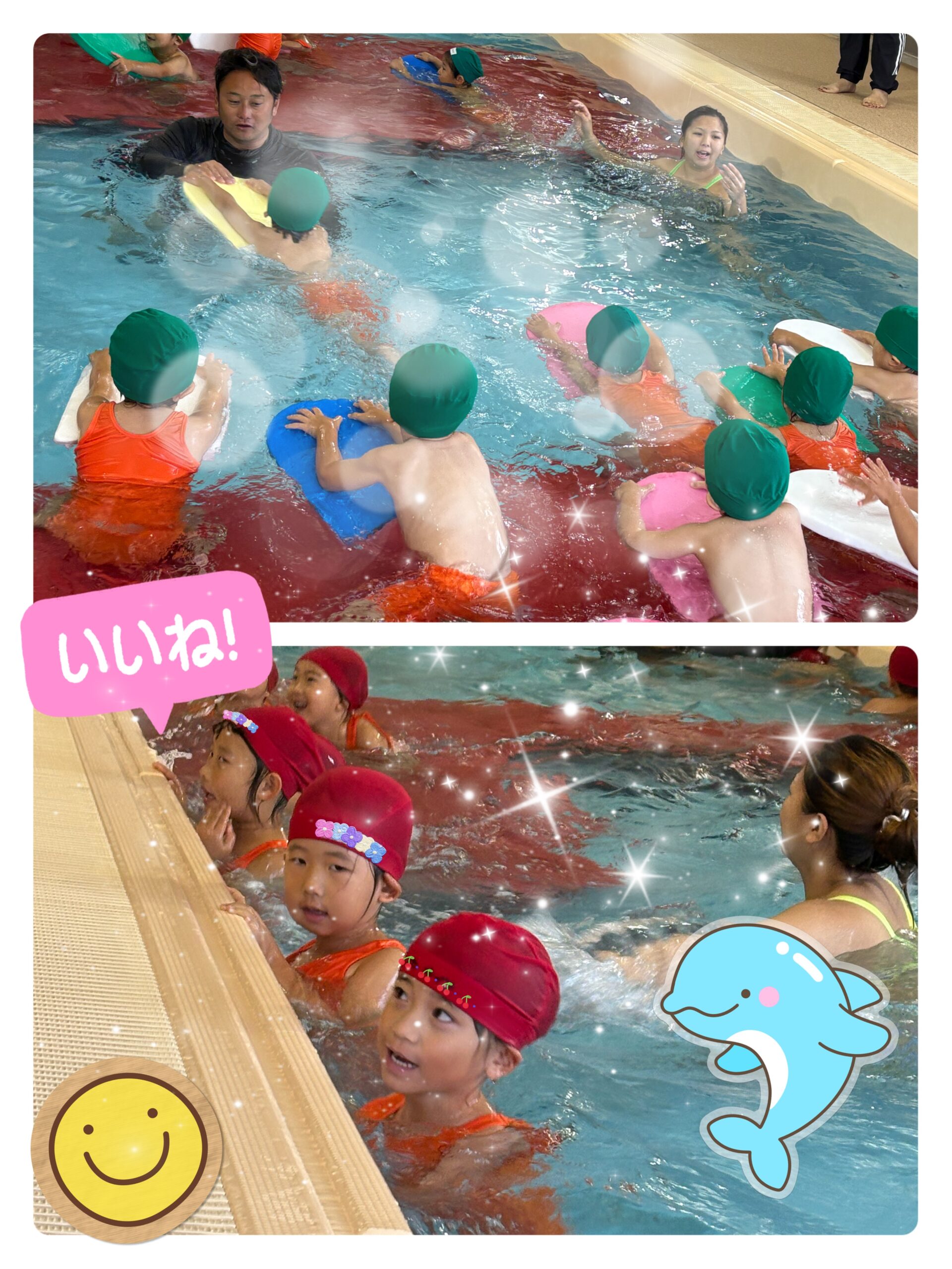 年長さんは、顔を付けてクロールの泳ぎへも挑戦するまでになりました。みんな、色々なことがたくさんできるようになりました👏