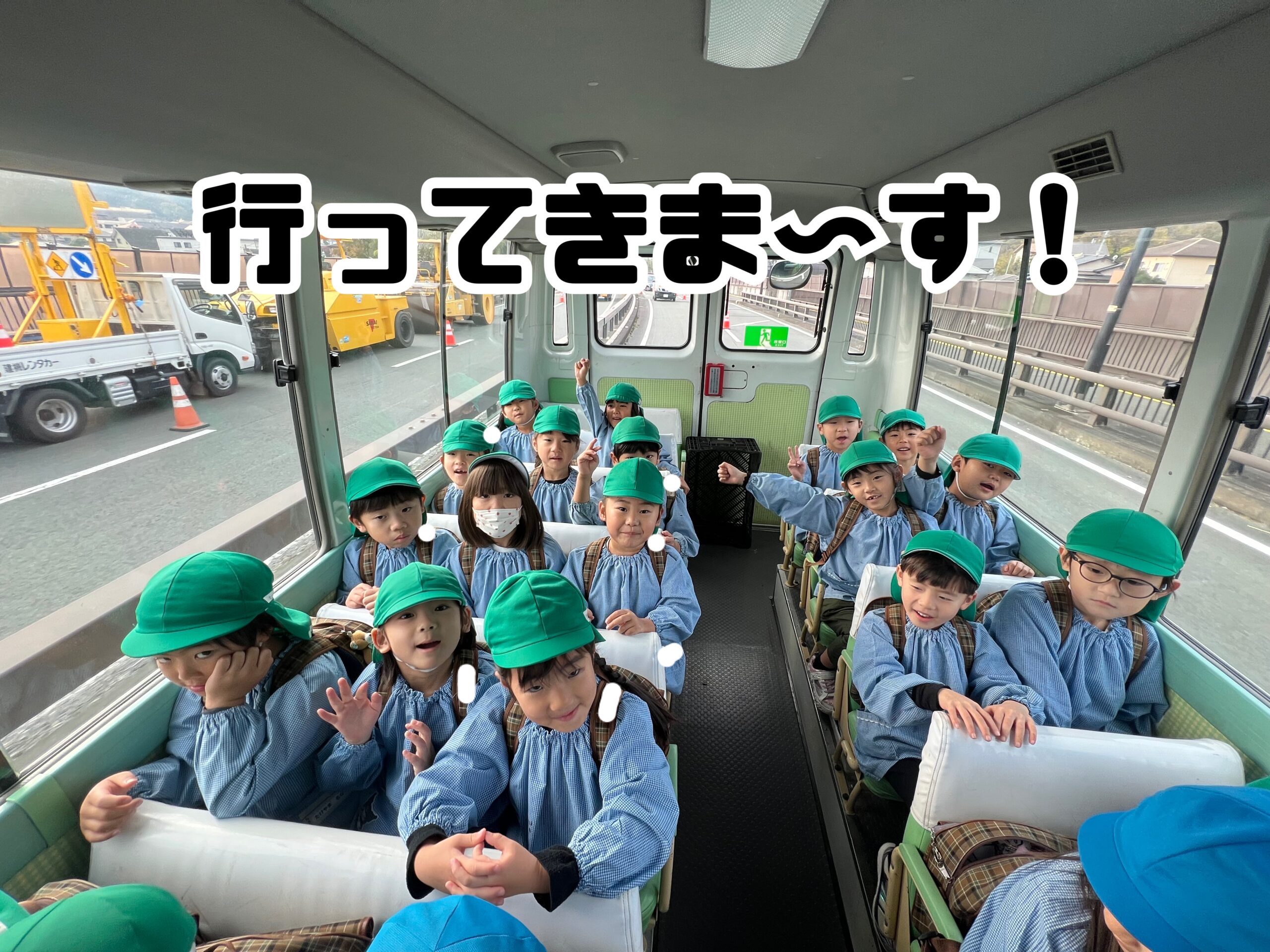帰りのバスの中ではまだまだ元気なお友だち。発表会のダンス、合奏、合唱で大盛り上がりでした。