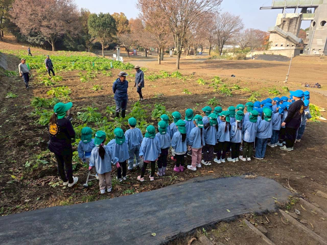 カントリーパークに到着し、畑に向か道中にバラ園もあり、子どもたちが「薔薇にはねトゲがあるんだよ!気をつけてね。」と教え合う姿もありました。カントリーパークには何度も来ているため、たくさんのことを覚えているようです。
