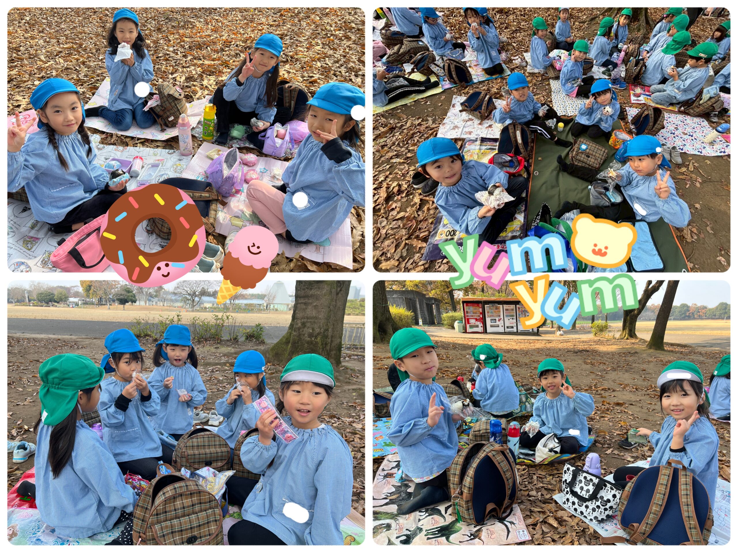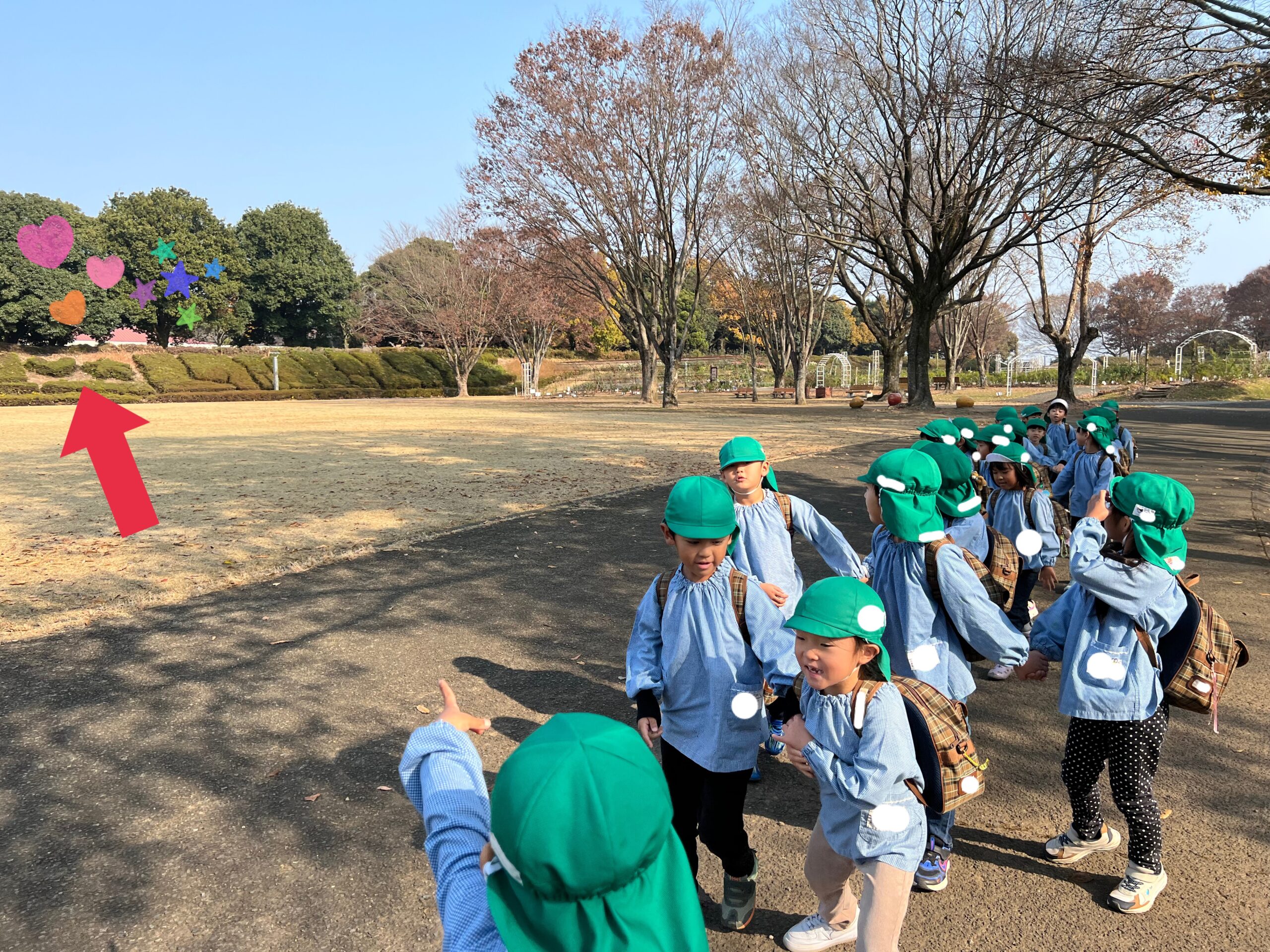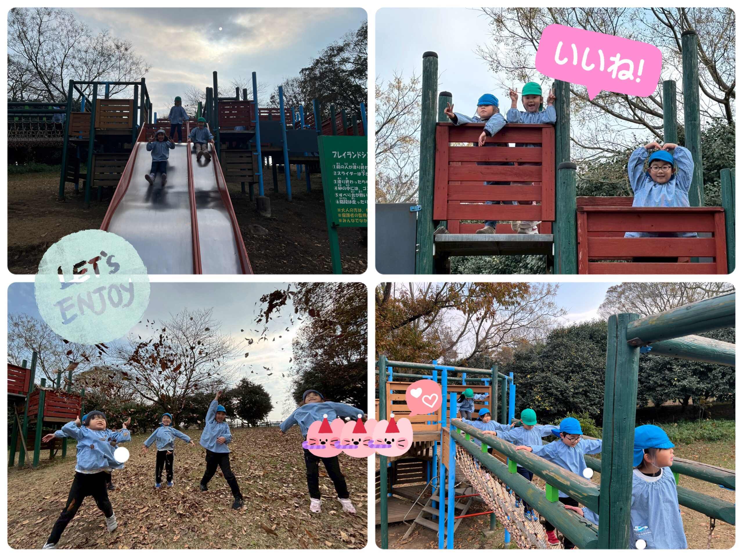 大きなすべり台やジャンプ台などたくさん遊ぶことができました。落ち葉も沢山あり、集めて投げて葉っぱのシャワーが出来ました。