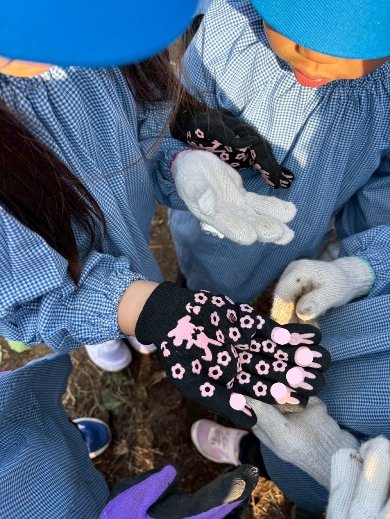 掘っている途中に虫を見つけました。冬に、バッタやテントウムシを見つけることができるということは、まだまだ冬の入り口なのでしょうね。