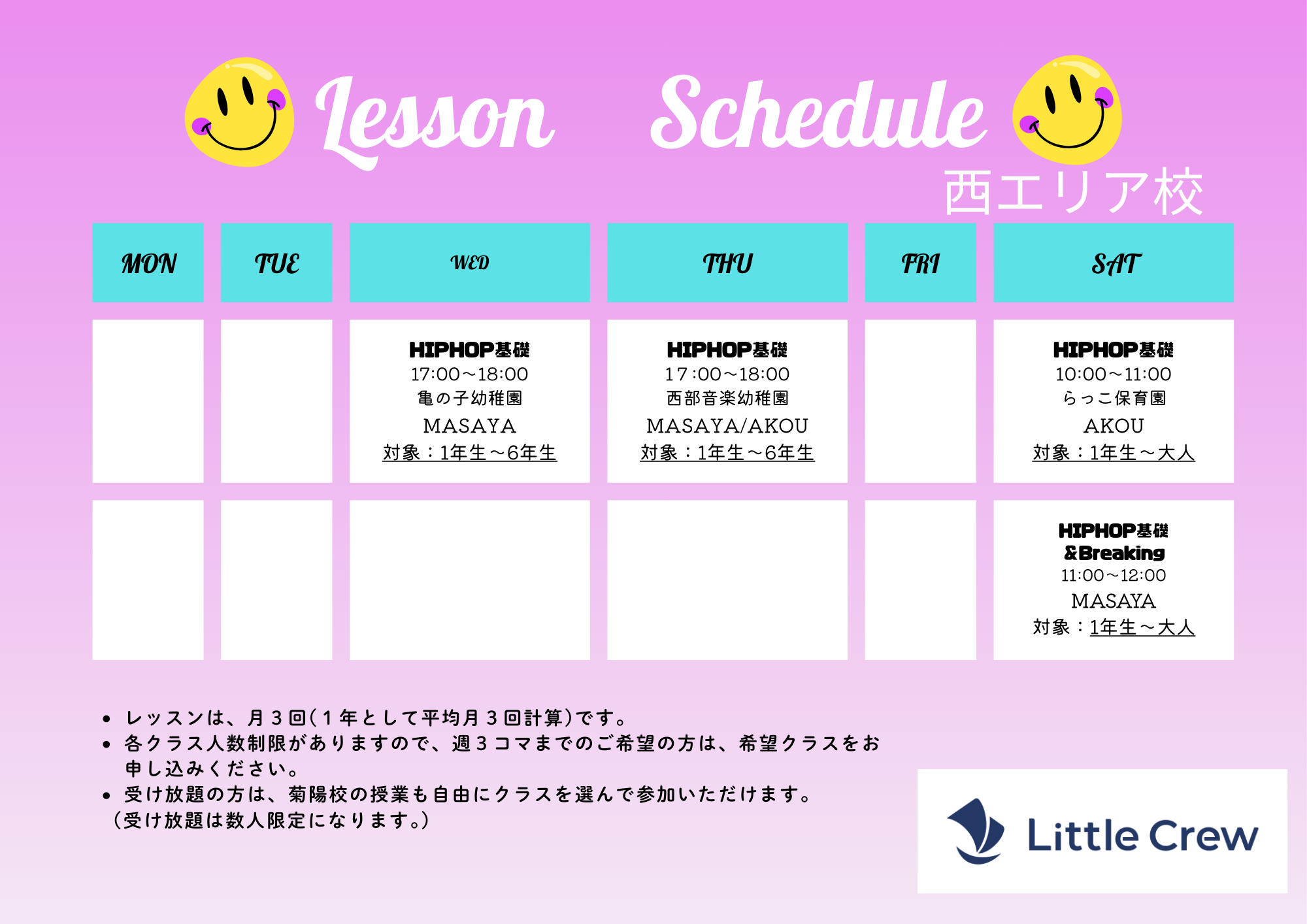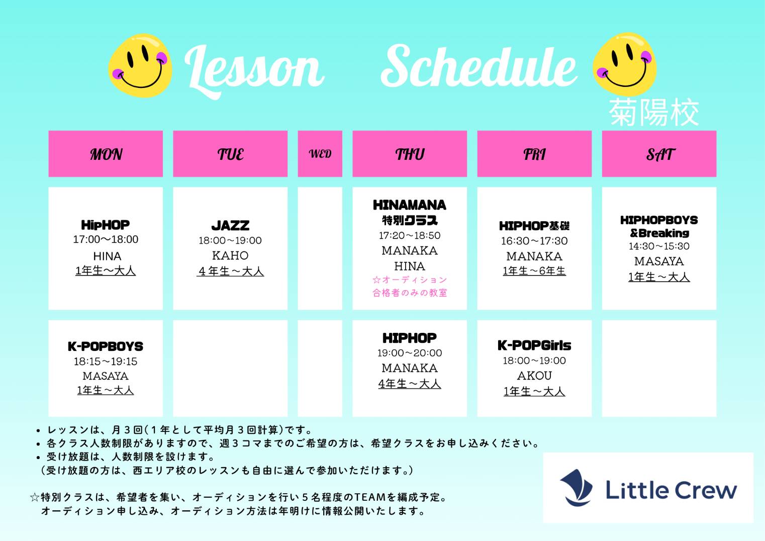 レッスンスケジュール・料金表につきましては、以下の通りです。