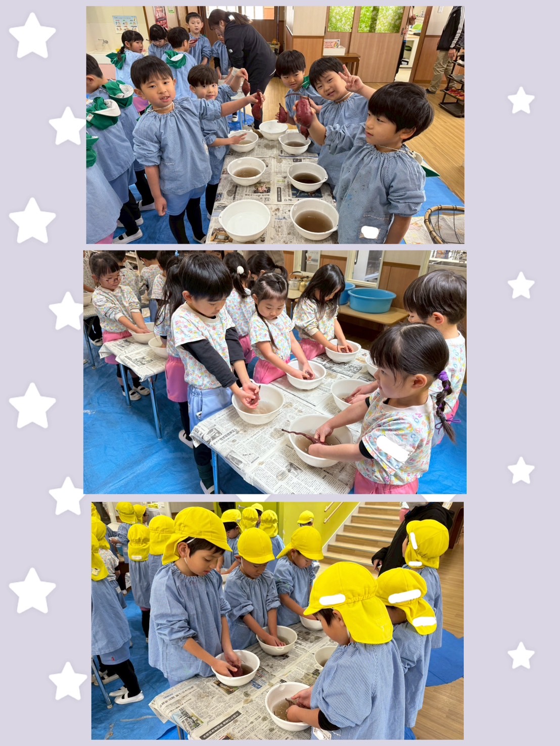 明日のどんどやに備えて、年長さんと年中さんがお芋を洗ってくれました!