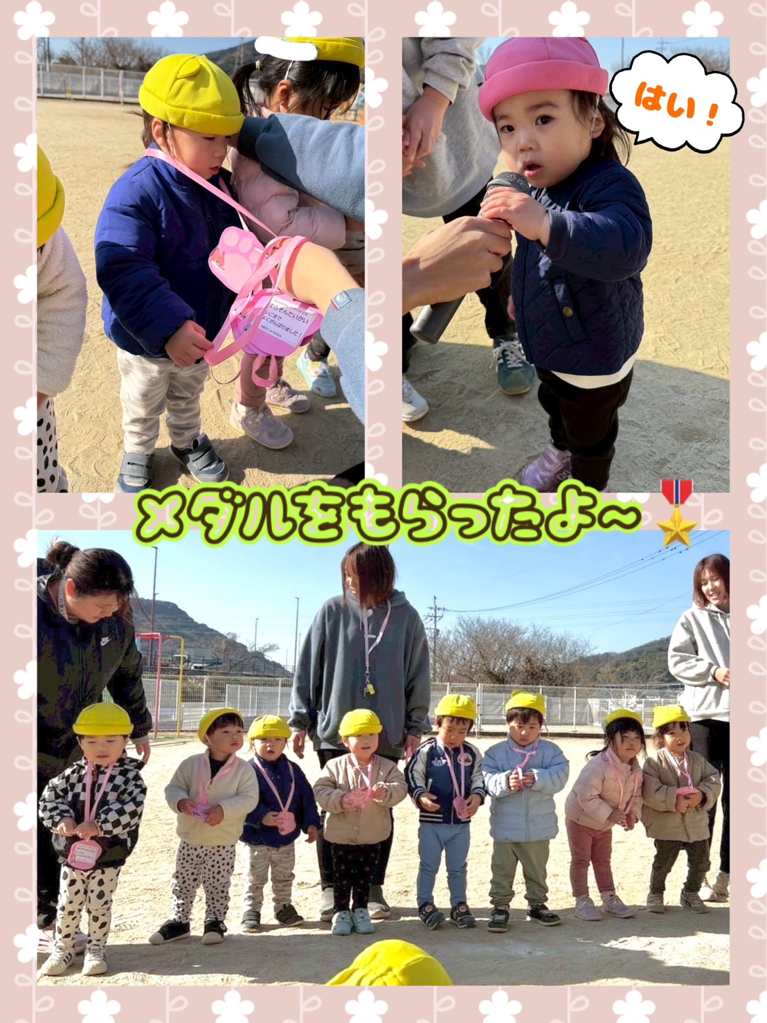 お名前を呼ばれ、少し照れた表情を見せる子も、誇らしそうにしている子もいて、みんなやりきったという気持ちが溢れており、満足げな笑みを浮かべる子どもたちでした。