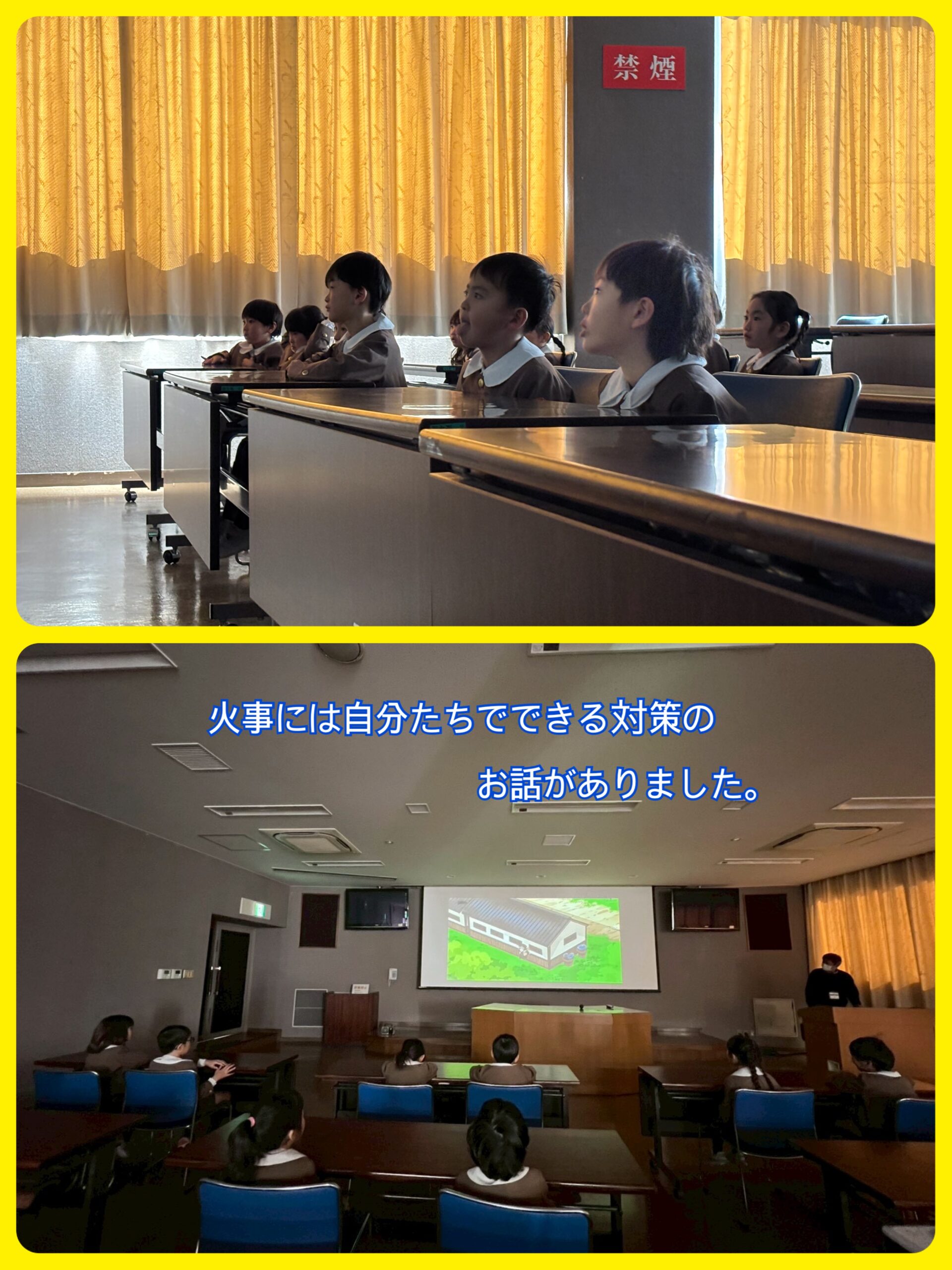早速、災害についてお話を聞いたり、「火の用心」のDVDを観せていただきました。