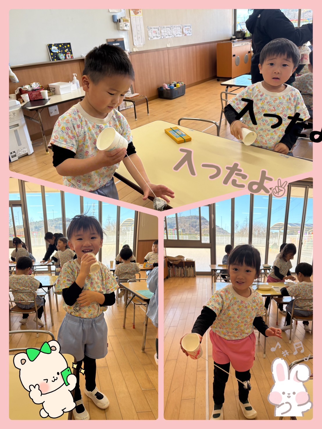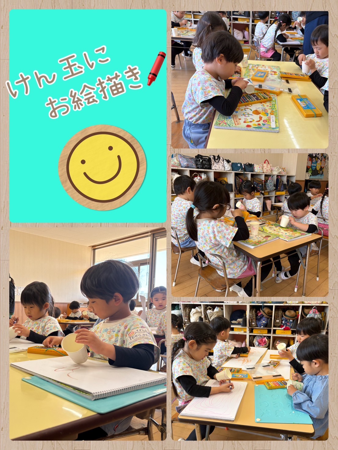 自分の手作りけん玉、嬉しそうにお友だちと一緒に遊びました😊