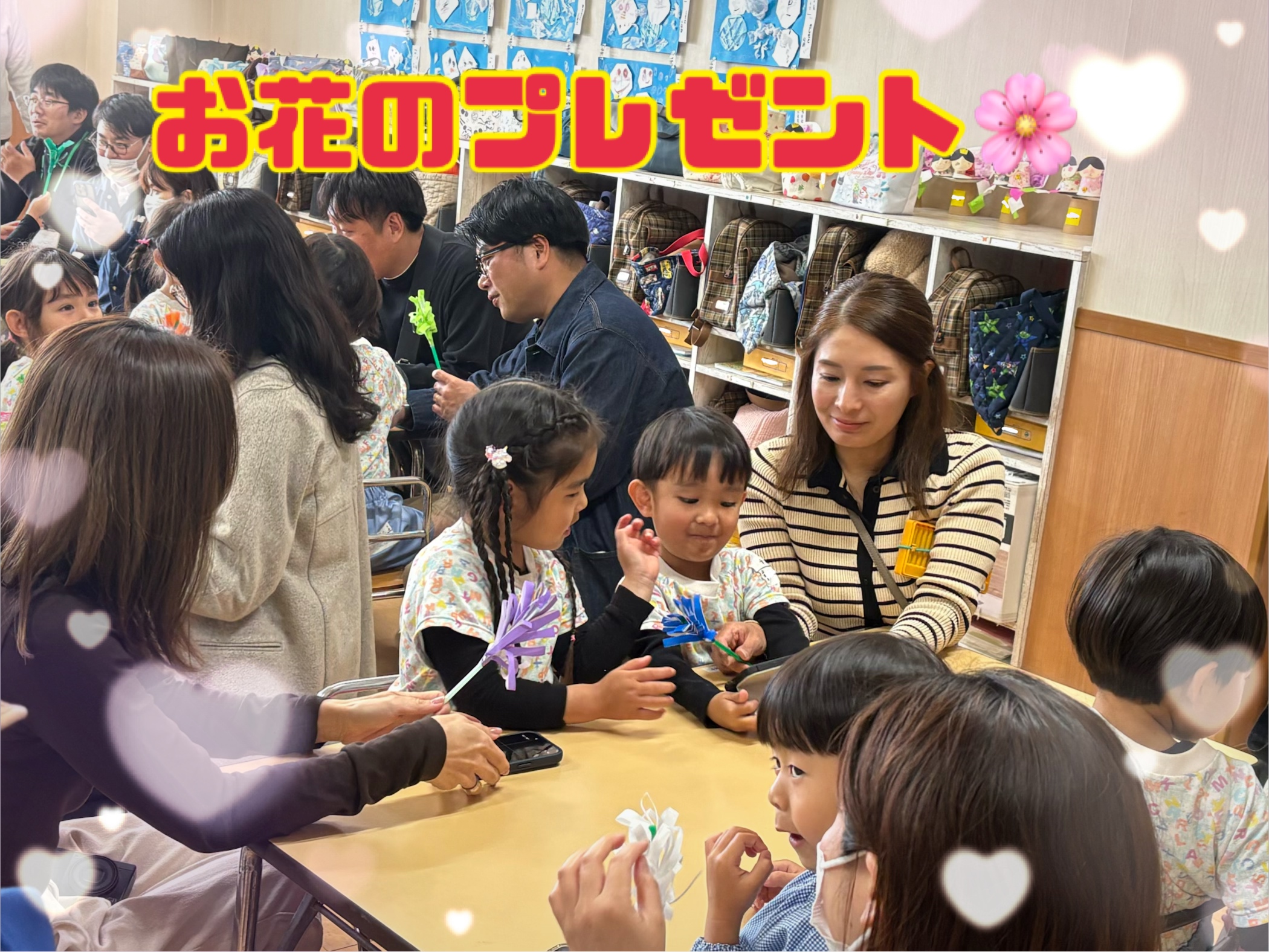 製作のあとは、以前作っていたお花のプレゼントを、お家の方への感謝の気持ちをこめて渡しました✨少し照れながらもお家の方に渡すことが出来ました😊