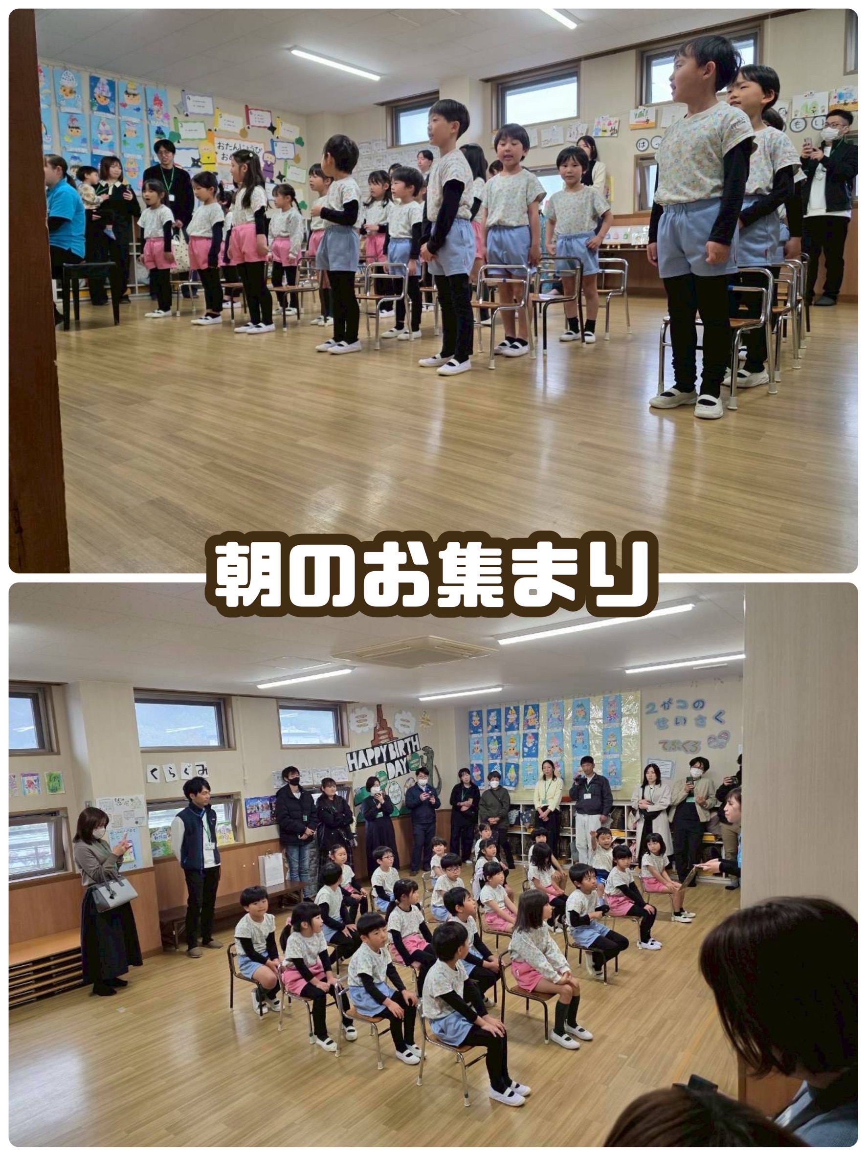 朝のお集まり、いつもとは違う雰囲気のせいか子どもたちはカチコチに緊張していました。(最後の参観を意識しすぎていたかな?)