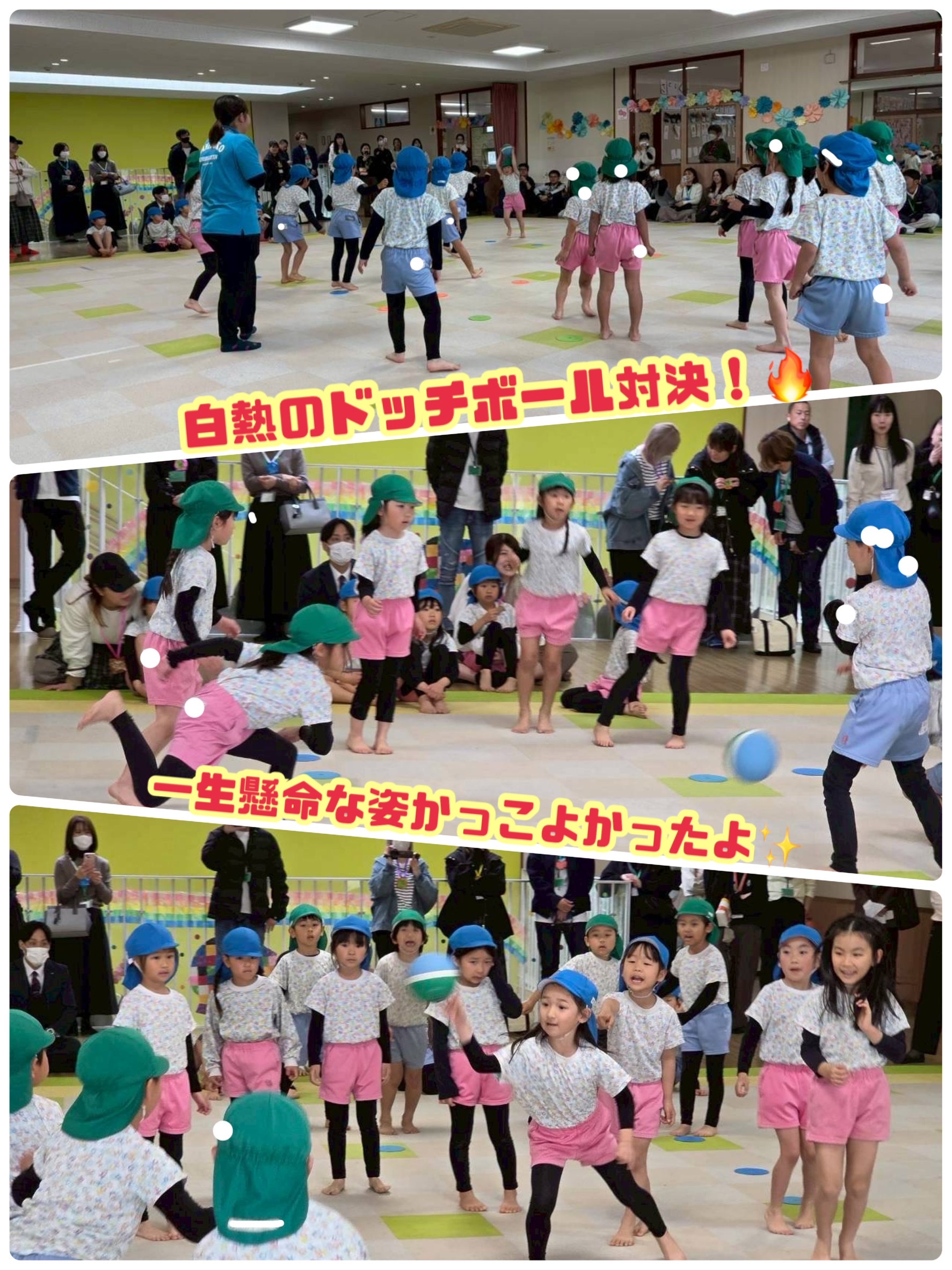 緊張しながらも1人ずつ発表する姿の後は、お友だちとの関わりや身体を動かす様子をご覧いただきたく、ドッチボールを計画してみました。