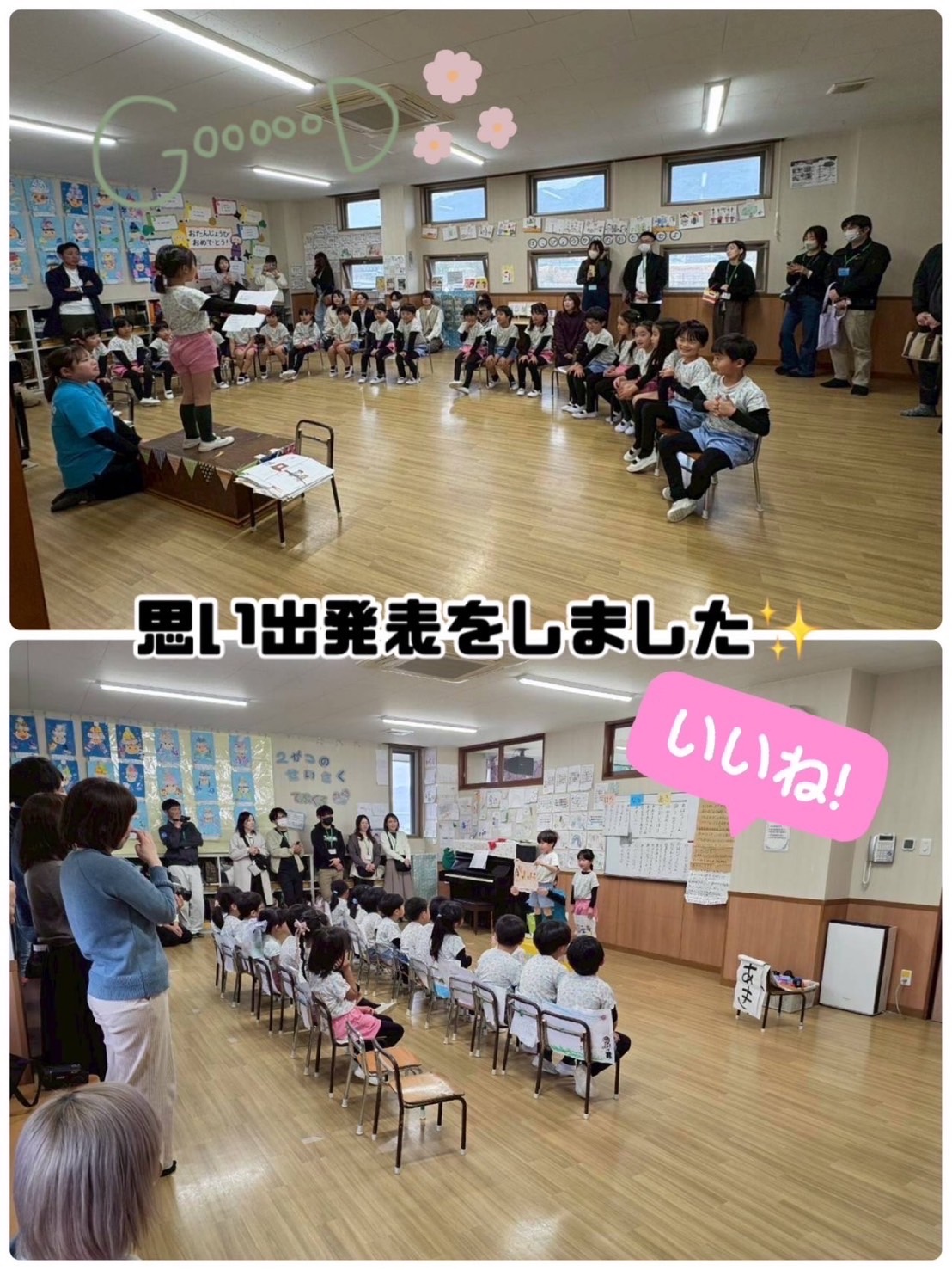 年長さんの一年間を振り返りその中から、一つ思い出を選び発表をしました。
