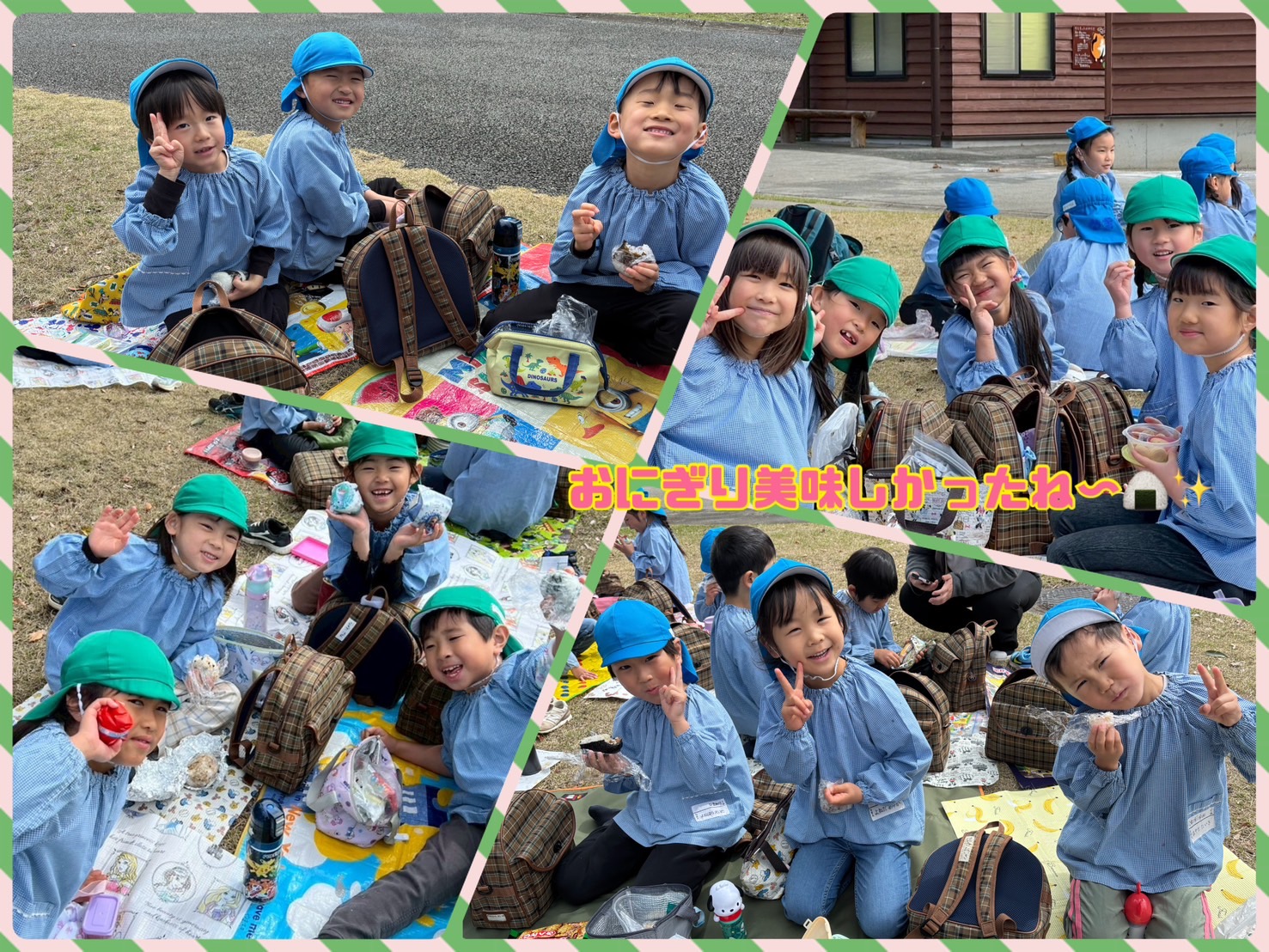 そして遠足の日の楽しみと言えば、おやつタイムです!お友だちと食べるおやつは特別だったようです🎵