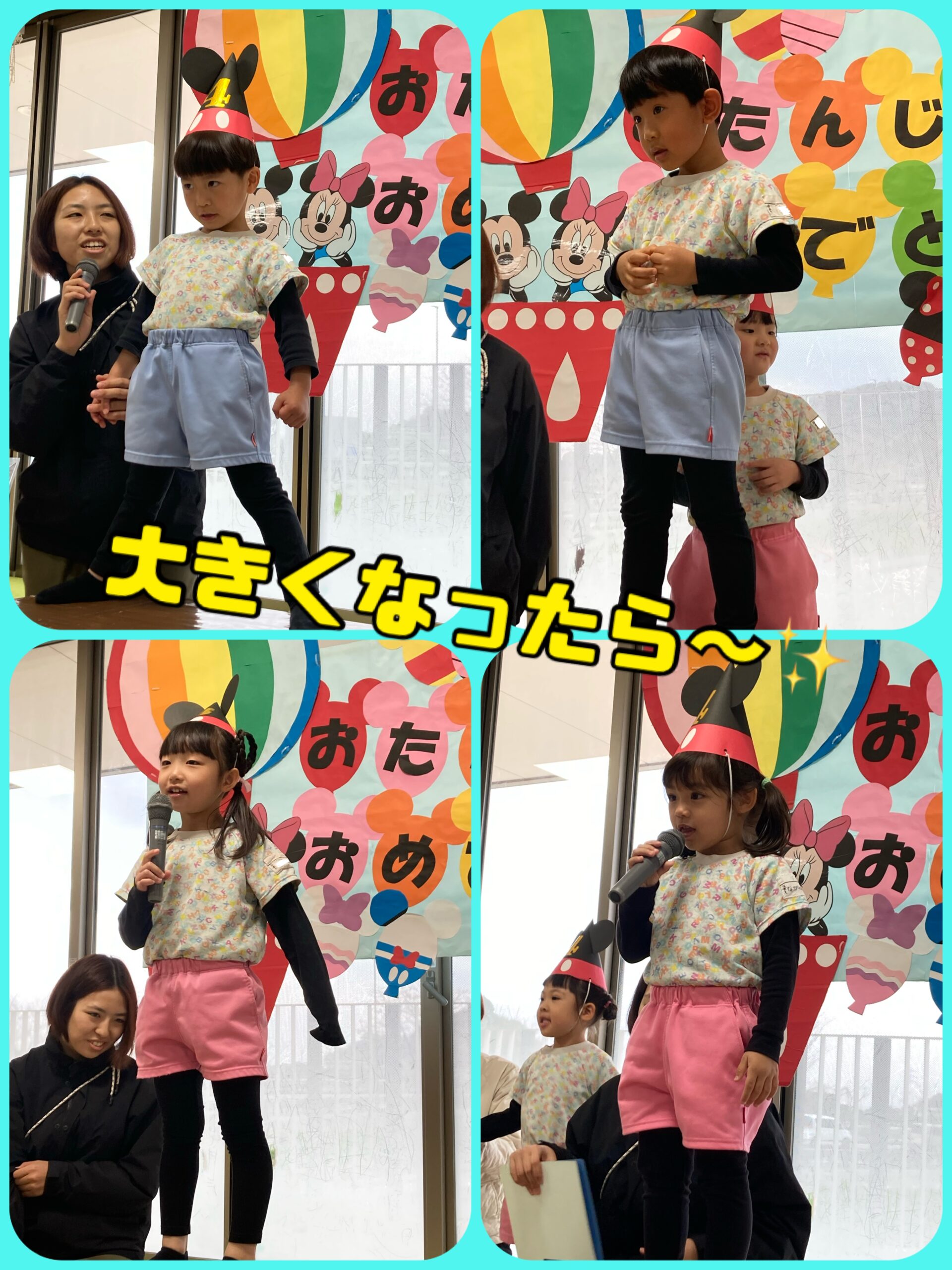 「お名前」や「大きくなったら何になりたいか」の自己紹介を、恥ずかしながらもしっかりと発表してくれました!子どもたちの中には、沢山の夢を持っているお友だちもいました✨