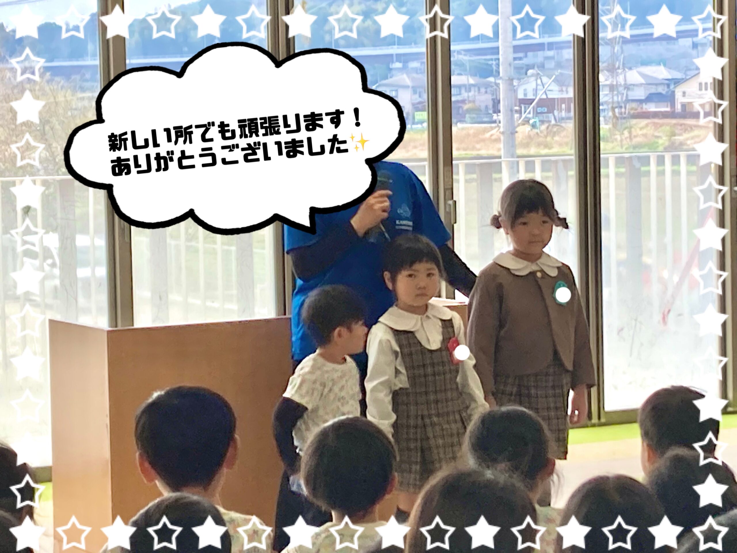 お引越しのため、退園するお友だちや新天地で頑張る先生とのお別れです。