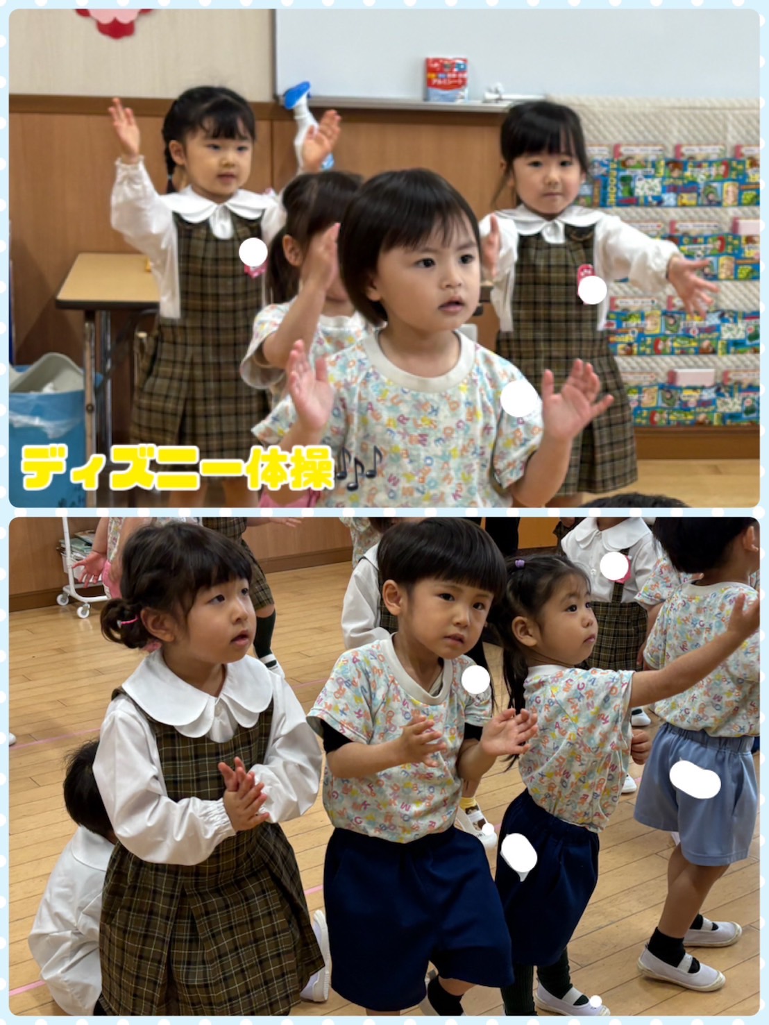 また、すずらん組さんでは、身体を楽しく動かしディズニー体操を行いました。