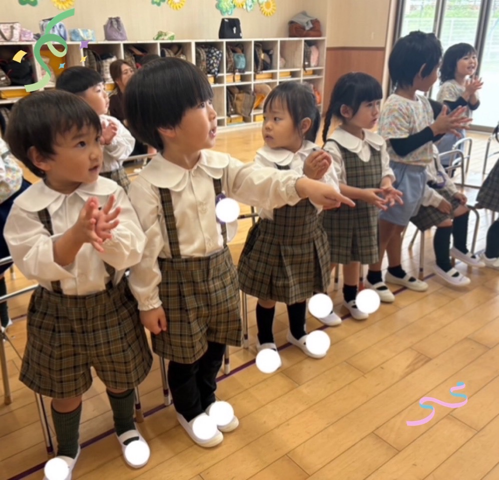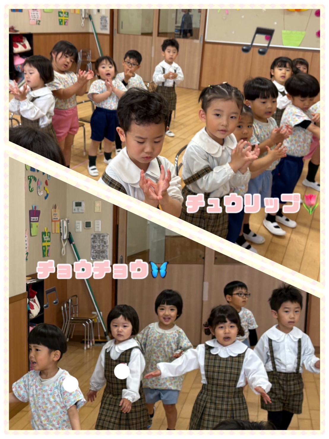 「ちゅうりっぷ」も「おてて、こうやってするんだよ!」と教える姿や、「もういっかいする!」と言う子どもたちの姿もみられ、先生たちは嬉しく温かい気持ちになりました。